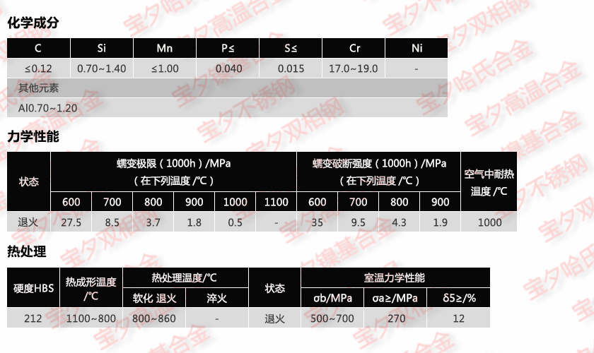 宝钢X10CrAlSi18,太钢X10CrAlSi18,新日铁X10CrAlSi18,日本冶金X10CrAlSi18,蒂森克虏伯X10CrAlSi18,奥托昆普X10CrAlSi18,日本神户X10CrAlSi18